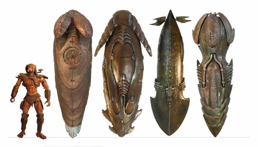 | Method in the madness | A side view of my little pod maquette. The two lumps lower down on the front were supposed to hint at the preditors knees and theres some detail to hint at the shoulders, implying that there was indeed a humanoid of some kind inside. | ||