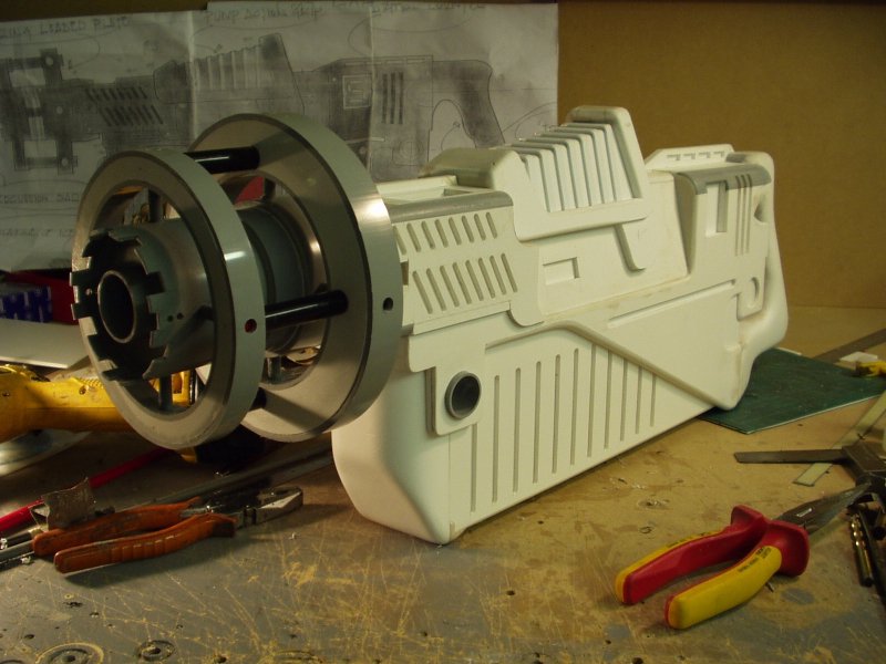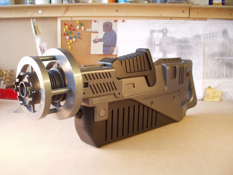 | Reverse logic | I knew the gun was going to be cast, but I sprayed it anyway to give it the finished look. Funny how on the actual gun, they reversed the colours and the rings. CLICK THIS LINK TO SEE A FEATURETTE | ||