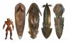 | Pod races | We all chipped in with ideas for the pod designs..you can tell which is mine - its the roughest...only spent a couple of hours on it. Thats my excuse and Im sticking to it.from left to right, designs belong to...John Lee, yours truly, Christine Overs and Alan Brannan.Even our Vinny drew up a design, but never made a maquette. In the end, they (the art dept) used their own design...something simpler that was easier to render with CGI methinks. | ||