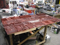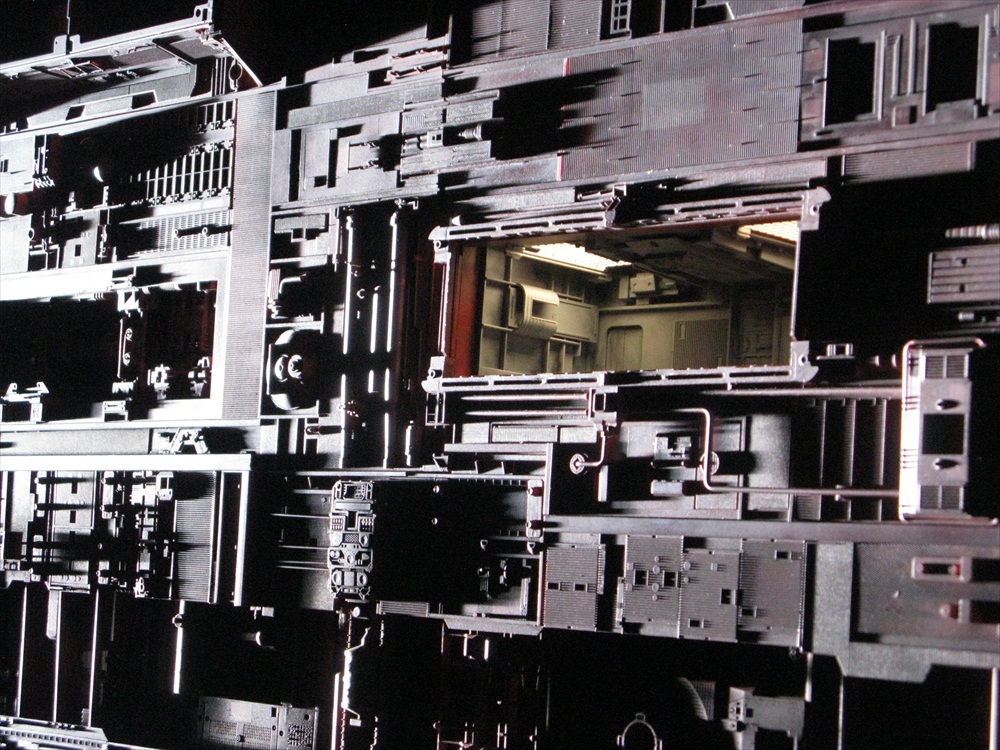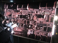 A Big Miniature is now known in the trade as a Bigiature and although this wasnt that big as miniatures go (4 feet by 12 feet)it represented a large area of the ship in close up. (its certainly not what most laymen think of when you tell them that you're a modelmaker). Please be patient when selecting a thumbnail as pictures may take a few seconds to download as they may be large and of high definition. |