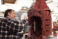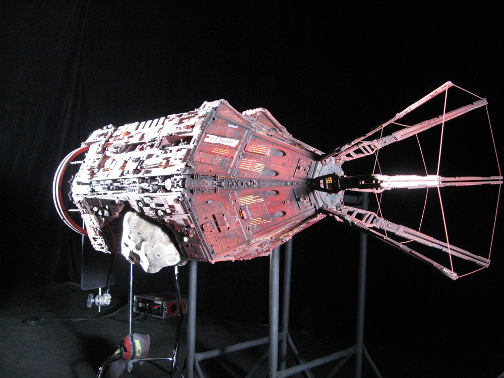 I felt a bit honoured to be given the task of refurbishing Red Dwarf herself. Such an Iconic spaceship with a long history and a huge fan-base to make happy. But there really wasnt much time to be daunted or freak out with pressure. So I powered into it. (see the workshop photos). Here are the FEW photos that I took on stage (there wasnt a lot of time for that either, as, understandably, theres a film crew buzzing around wanting to get on with the job). |