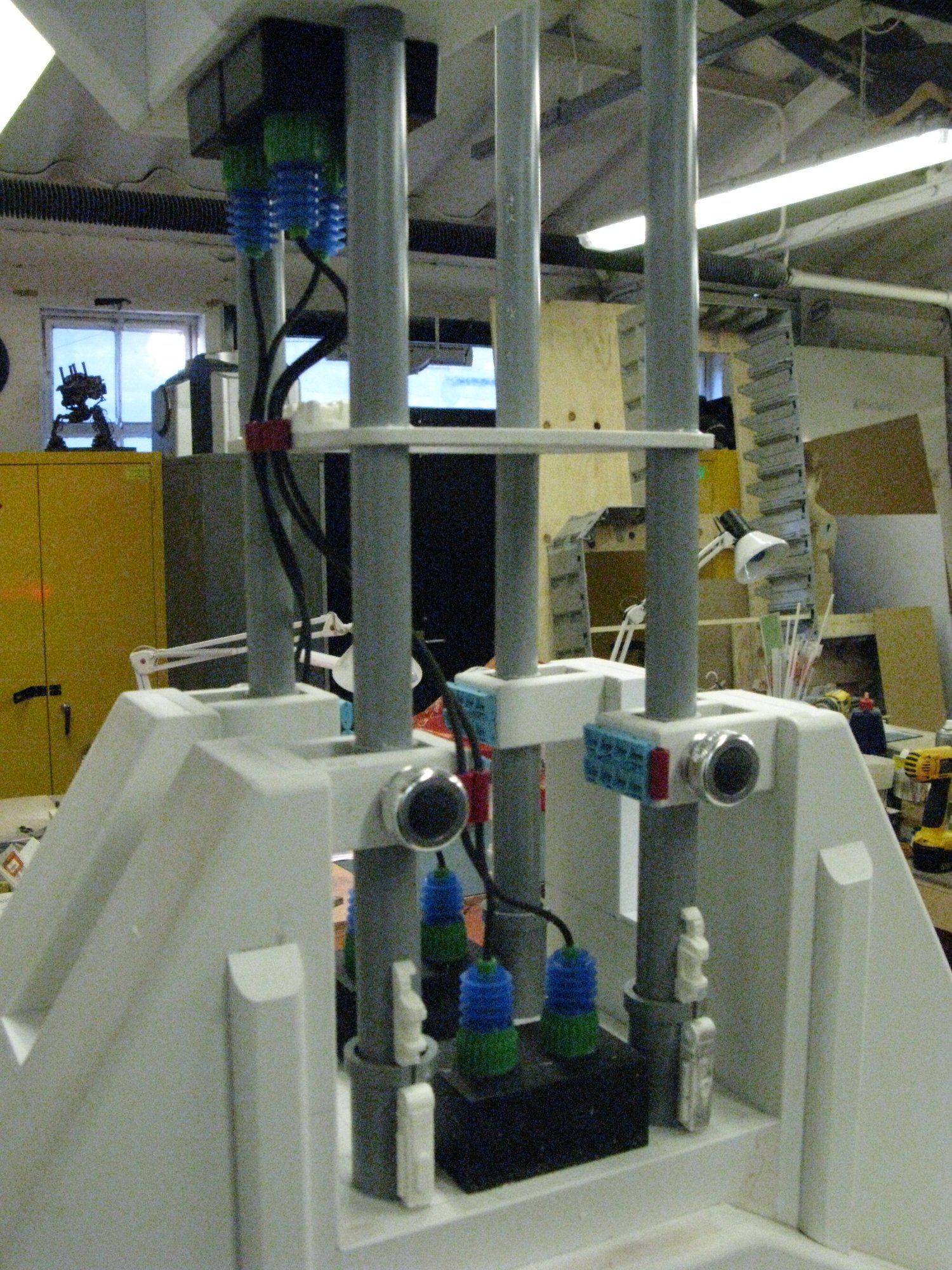 to pull cable-ties tight, cutting out holes for monitors and making lots