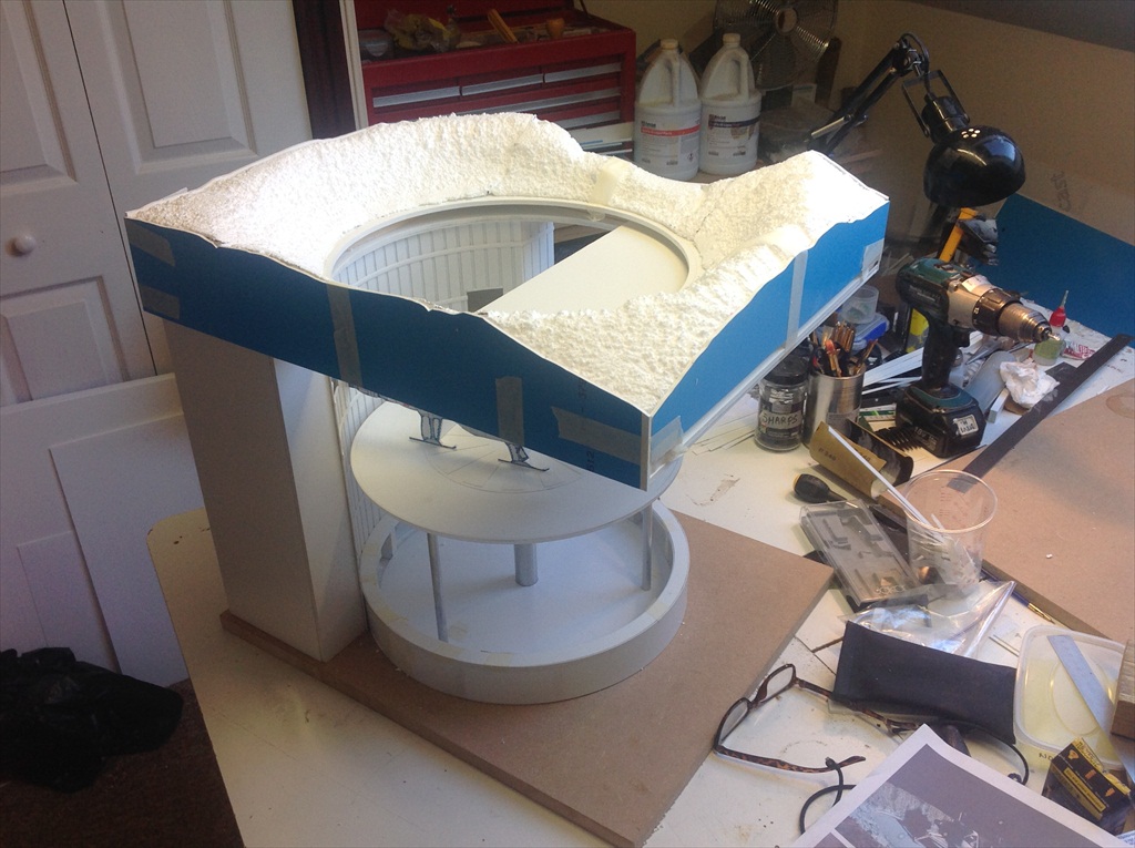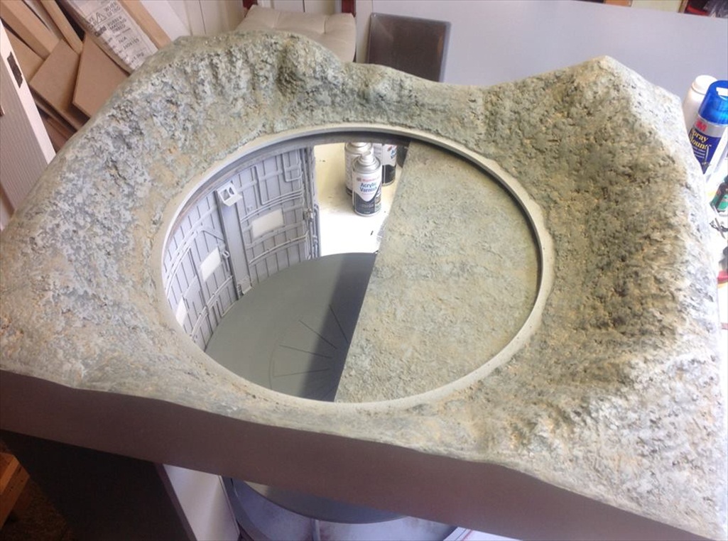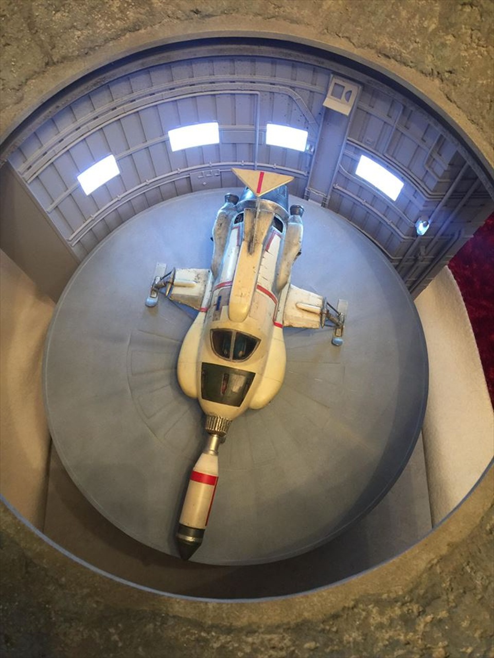 UFO Interceptor SILO Commissioned to make an interceptor Silo from Gerry Andersons live action series UFO. Any differences you see will be due to the different lenses used. My camera is wide angle and tends to distort everything and make it look bigger. Foamex and Styrene construction, with polystyrene and Polyfiller for the crater (thats a lot of pollys). Pistons are solid aluminium.